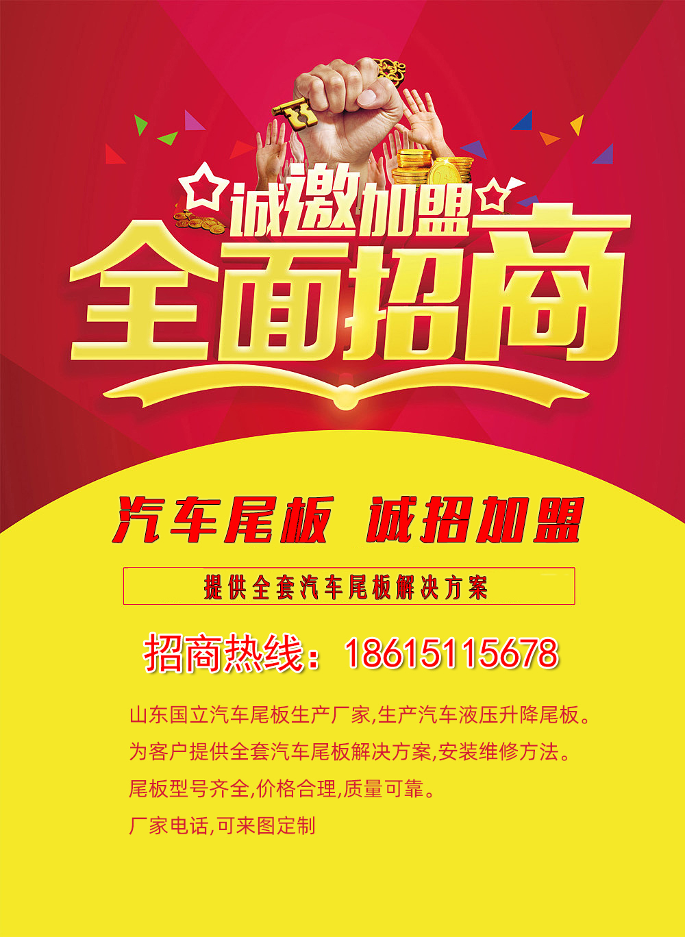 我們的經(jing)營理念:打造(zao)汽車尾闆合(hé)格産品為目(mu)标,以生産方(fāng)💞便,可靠,好用(yòng)的尾闆産品(pǐn)為己任,使國(guó)立汽車尾闆(pǎn)成為國内外(wai)用戶認可的(de)品牌。